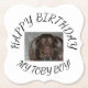 Planning a birthday celebration for your dog? Consider these personalised coasters featuring your dog's photo. The design includes "Happy Birthday" at the top, with space in the centre to add your beloved dog's photo, and at the bottom, you can personalise it with your dog's favourite nickname.