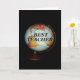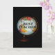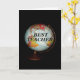 A brightly-coloured antique globe, photographed against a black background, is the subject of my "Happy Birthday To The Best Teacher On Earth!" birthday card. "Best Teacher", in black text on the face of the globe, completes the front image of the card.