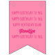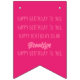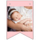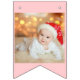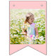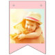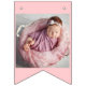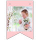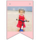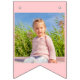 Happy Birthday banner with 8 of your favourite photos, personalised happy birthday to you song and customised flags with your age. The design has a bold girly colour palette of pink and green.