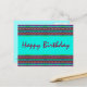 Colourful red and turquoise Happy Birthday card. Colourful southwestern style design on postcards. Greeting can be customised with any text you want. Original artwork by Los Angeles artist Donna Grayson.