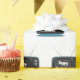 Aqua blue retro television on white background with happy birthday text on screen.