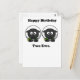 Congratulations! You or a loved one are another year older or wiser. Celebrate you birthday with this super cute cartoon. This customisable design features a black and white cartoon of two fluffy sheep with big smiles and the words “Happy Birthday Two Ewe” written above in a fun font.