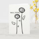 Happy Birthday Two Flowers Simple Line Drawing Card