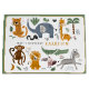 Happy Birthday Two Wild Safari Animals Cute Kids Personalised Gift Bag features whimsical giraffe, elephant, lion, zebra, leopard, monkey, snake, crocodile, cute and colourful wild animals with the text in modern black and mustard typography script. Perfect for boys or girls, kids birthday party gift bag. Designed by Evco Studio. For coordinating items view www.zazzle.com/store/evcostudio