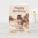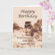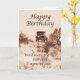 A vintage sepia photograph of a 1930's car at the top of a hill in bushland." Happy Birthday" is written at the top, and " You might be over the hill, but there are a few miles in you yet" is at the bottom.