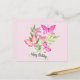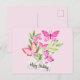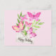 Happy Birthday Watercolor Pink Butterflies, Leaves Holiday Postcard