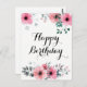 Happy Birthday Watercolor Pink Floral Postcard