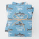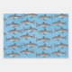 Happy Birthday Whimsical Blue Ocean Sharks Fun Wrapping Paper Sheet