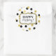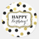 Happy Birthday White Black Gold Confetti Classic Round Sticker