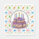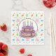 A Colourful And Festive Birthday Paper Napkin With Cake In Centre And Cherry Heart On Top