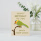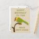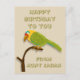 This cute birthday card has my computer generated drawing of a colourful parrot on tree branch perch. This parrot has a green body accented with bright blue. It's head is yellow and blue with a touch of red. You can edit the text on front and back.