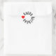 Happy Birthday with a red heart written in a stylish modern typeface following a circular path. Useful for decorating parcels, an attractive way to affix gift tags, decorate envelopes.