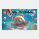 Happy Birthday with Teddy Bear and Balloons Rectangular Sticker
