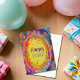 A trendy colourful Inspirivity card to send to your girlfriends, nieces, grandmothers, granddaughters, sisters or coworkers…anyone really! The bright colours and fun flower artwork will be a nice surprise for whoever receives it. Zazzle offers volume discounts for anyone wishing to purchase inspirivity cards for their stores. To see more of my daily inspirational artwork check out Inspirivity on Facebook or Instagram.
