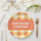 Cool yellow Gingham or Chequerboard Pattern. Click personalise to change the text to a name.