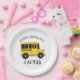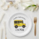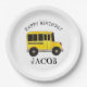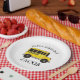 Just personalise with your information! Plate design features an original marker illustration of a yellow school bus, with HAPPY BIRTHDAY in a fun font.
