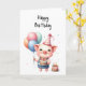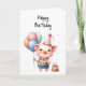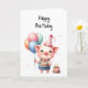Add a little humour for someone special with this cute piglet holding balloons and a cake on this birthday card. Happy Birthday, you party animal!
