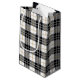 Black zipper on gold, white and black tartan plaid pattern with Happy Birthday text.