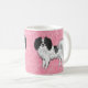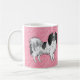 Happy Black And White Phalène Dog On Pink Hearts Coffee Mug