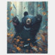 Happy Black Bear Tossing Leaves Fleece Blanket