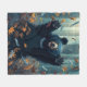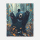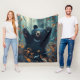 Happy Black Bear Tossing Leaves Fleece Blanket