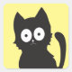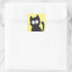 Happy Black Cat Silhouette on Yellow Square Sticker