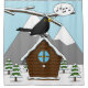 The snow just stopped and a cute blackbird is singing happily perched on the roof of his snowy house. The birdhouse is hanging from a branch. The landscape depicts a winter scene with snow, pine trees and mountains. This cartoon illustration is an ideal gift for people who love birds, winter and music.