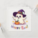 Adorable kawaii ghost illustration with a witch hat, pumpkin, cobweb, and stars. Fun and cheerful Halloween design perfect for spooky season vibes, parties, gifts, and decorations. Ideal for kids, teens, and anyone who loves cute spooky art.