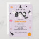Make your child's Halloween birthday party unforgettable with this custom BOO Day invitation! Featuring adorable ghosts, pumpkins, and witch hats on a pink background, this invitation is perfect for a spooktacular celebration. Personalise it with your child's name, age, party details, and RSVP information. Ideal for moms planning a fun and festive Halloween-themed birthday party. Get ready to host a party that's sure to be a hit with all the little ghouls and goblins.