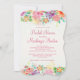 This colourful floral invitation features a wide spectrum of colours and a variety of blooms in a top and bottom matching border. Suitable for any feminine celebration.