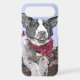 Protect your phone with this case showing a close-up photograph of a black and white Border Collie Heeler mix wearing a colourful red scarf altered into a coloured pencil etching. Click customise to add text like a name or initial.