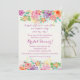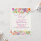 This colourful floral invitation features a wide spectrum of colours and a variety of blooms in a top and bottom matching border.