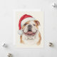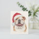Happy Bulldog Watercolor Santa Hat Art Holiday Card