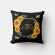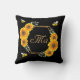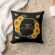 Happy bumble bees sunflowers black couple monogram cushion