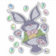 Adorable picture of a bunny dancing with coloured eggs around him, is featured on these custom -cut stickers. Great to use for decorating, Easter, scrap booking and more!