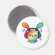 Happy Bunny or Rabbit with headphones listening to music. Kawaii style.