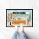 Happy Camper Autumn Door Mat with lake, deer and maple trees.