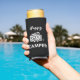 Happy Camper in White with Blue Background Seltzer Can Cooler