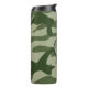 Camo pattern, olive green, light and dark green. Happy Camper and custom name in a vintage stamp. Great gift for a dad, or any camper.