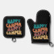 Happy Camper Retro Wavy Text Black background Oven Mitt & Pot Holder Set