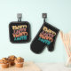 Brighten up your kitchen with our stylish and functional pot holder and oven mitt set, featuring a black background with the text "Happy Camper" in a colourful wavy retro style. Perfect for cooking enthusiasts and camping lovers alike, this set is designed to add a touch of vintage charm to your culinary adventures. The colourful retro wavy text on a classic black background adds a fun and vibrant touch to your kitchen or campsite. Made from high-quality materials, this set is built to withstand high temperatures and frequent use. Perfect for housewarming, birthdays, or as a thoughtful gift for the camping enthusiast in your life. Ideal for both indoor and outdoor cooking, whether you're baking at home or grilling at the campsite.