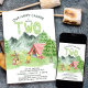 Happy Camper 2nd birthday invitation - perfect for an outdoor birthday party, backyard bbq, campers, picnic in the park etc. This watercolor design has mountain and woodland scenery with tent, campfire, guitar and lantern. TWO is hand lettered in adventurous typography with green watercolor, and the title reads "our happy camper is turning two", which you can customise.