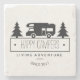 Cute home decor or for on the road with your RV is this funny camping stone coaster featuring a classic vintage motorhome silhouette surrounded by pine trees. Reads HAPPY CAMPERS in black below in whimsical letters. Or add last name or any custom text. Reads LIVING ADVENTURE below that and SINCE with custom year. Makes perfect personalised retirement gift for retiree ready to travel in their RV. Or nice personalised gift for any RVers. Would look great in a rustic cabin or vacation lake house, too. Add a background colour or change the style, size, or colour of the monograms as well!