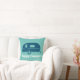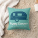 A cheerful accent pillow, perfect for your camper or RV. Shown with a teal background and teal coloured camper design with the phrase "Happy Campers". Customise your family name to make it one of a kind. Background colour can also be changed to match your decor and preferences.