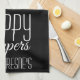 A fun "Happy Campers" kitchen towel with easy personalisation.