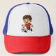 Happy Cartoon Boy Playing Soccer Trucker Hat