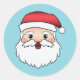 Happy Cartoon Santa Claus Head On Blue Classic Round Sticker
