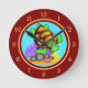 Happy Cartoon Sea Turtle with Bright Red and Gold Round Clock