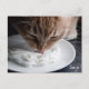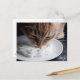 Postcard with a photo of a cat licking cream. The words join us in one corner. Customisable.