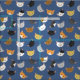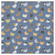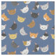 This fun fabric features a pattern of different smiling cat faces on a blue background.